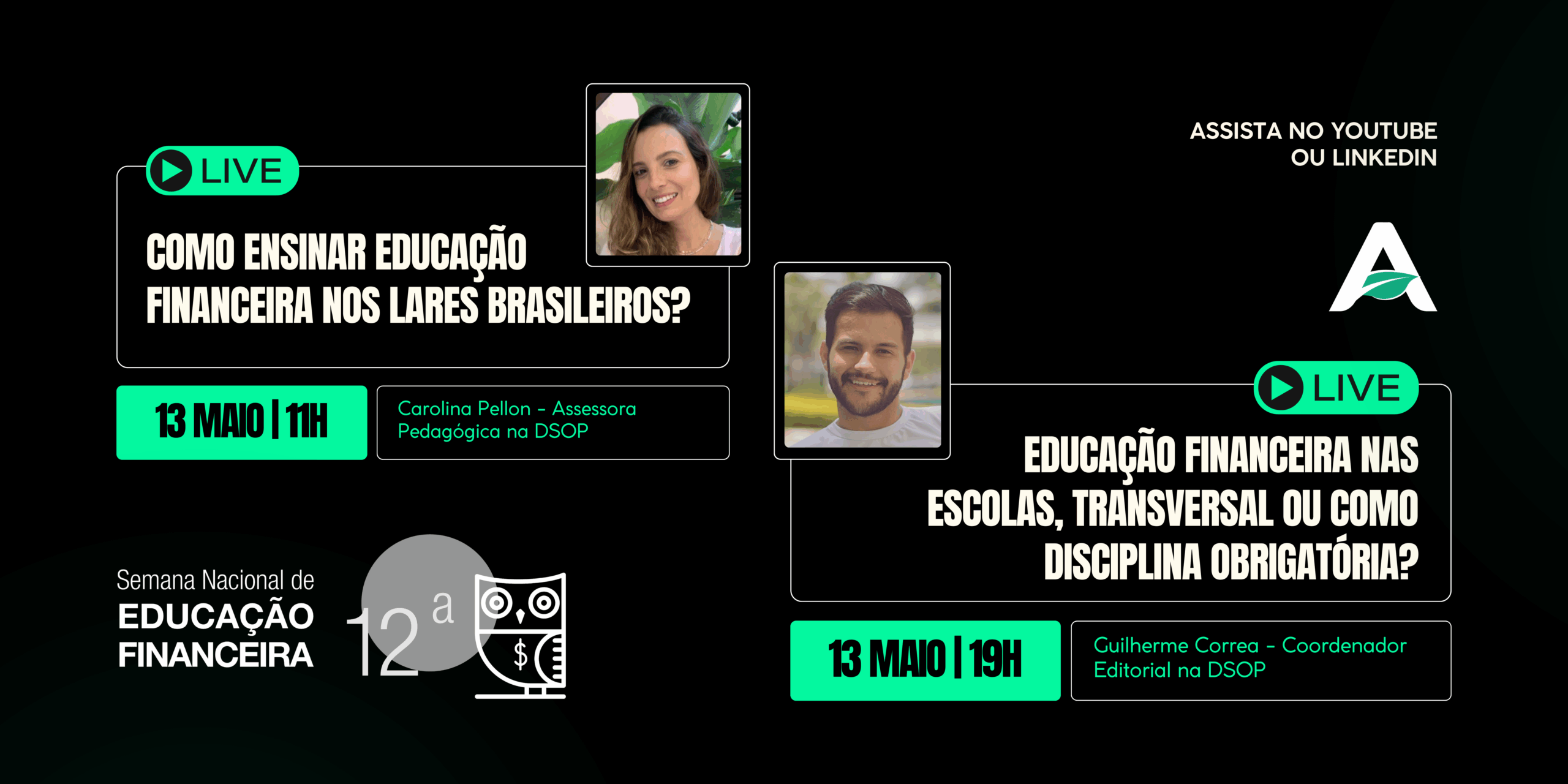No dia 13/05, teremos dois encontros imperdíveis pra refletir sobre o papel da educação financeira na formação de crianças, jovens e famílias brasileiras.