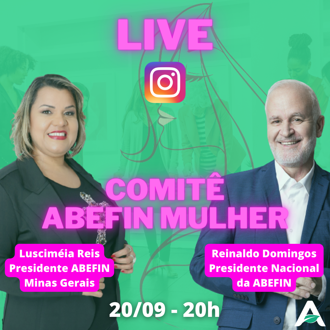 LIVE a ser realizada pelo Instagram da ABEFIN, com nossa Presidente de Minas Gerais Lusciméia Reis e o Presidente Nacional da Associação Reinaldo Domingos, com o tema:
